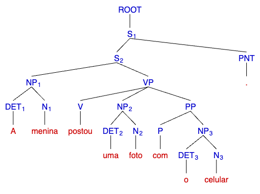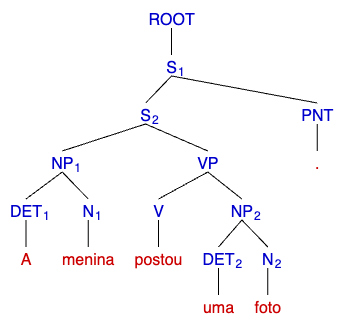 Na Figura 6.15, temos a representação parentética da sentença “A menina postou uma foto”.