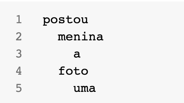 Na Figura 6.8, os dependentes ou nós filhos, por exemplo “menina” e “foto”, são indentados em relação ao nó pai “postou”. Os nós “a” e “uma” são indentados em relação aos nós “menina” e “foto”, respectivamente.