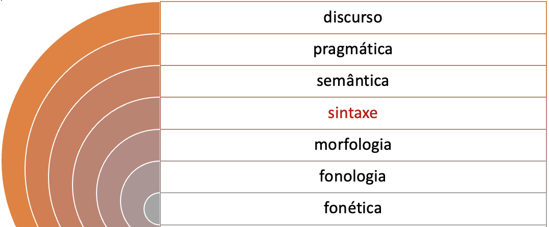 Conforme apontado na Seção Introdução deste capítulo, a sintaxe é um dos estratos centrais no sistema linguístico (Figura 6.1). Por estar no centro do sistema, seu estudo possui interseção com vários outros níveis, como a morfologia, a semântica, a pragmática e o discurso. Isso porque a separação em níveis ou estratos é uma forma didática de apresentar o objeto de estudo de cada área; porém, na língua em uso, esses níveis são interdependentes uns dos outros. Portanto, definir os limites entre um nível e outro é uma tarefa complexa. A seguir, exploraremos alguns conceitos e problemas linguísticos que estão na fronteira entre a sintaxe e um outro nível de análise linguística.