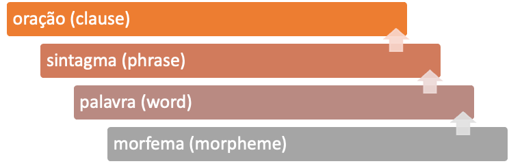 A escala de ordens abrange as unidades utilizadas para a descrição da língua, seja esta língua falada ou escrita. A unidade superior de análise – a oração – consiste em um conjunto organizado de palavras que constroem significados sobre algum evento no mundo, que, como dissemos, podemos indagar perguntando “quem?” faz “o quê?”, “para quem?”, “como?”, “quando?”, “onde?” etc.