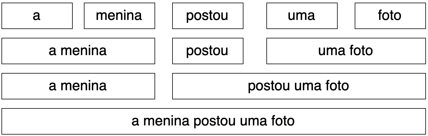 Os agrupamentos operam como pequenos “tijolos” que vão construindo significados, ao serem agrupados em uma unidade maior até construir um significado que é relevante para a oração. Nessa analogia com tijolos que são agrupados, o Exemplo 6.3 pode ser representado como disposto na Figura 6.3: