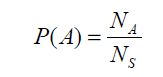 A probabilidade pode ser usada para representar o grau de confiança no resultado de algumas ações (observações) que não são definitivas. Na teoria da probabilidade, o termo espaço amostral, S, é usado para se referir à coleção (conjunto) de todos os possíveis resultados. Um evento refere-se a um subconjunto do espaço amostral ou uma coleção de resultados. A probabilidade do evento A, denotada como P(A), pode ser interpretada como a frequência relativa com que o evento A ocorreria se o processo fosse repetido um grande número de vezes sob condições semelhantes. Com base nessa interpretação, P(A) pode ser calculado simplesmente contando o número total, S_N, de todas as observações e o número de observações A_N cujo resultado pertence ao evento A. Ou seja,